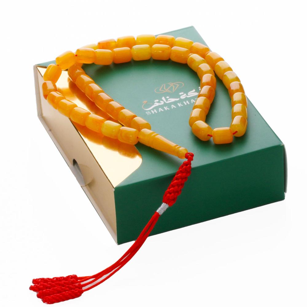 - الوزن: غالباً ما تكون أخف وزناً مقارنة بالكهرمان الطبيعي، مما يزيد من راحتها عند الحمل والاستخدام.